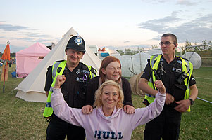 Day 3, Friday 19th. We all met at Northern Theatre for 1pm, bags packed and sleeping bags on hand and travelled to Tickton to settle into the palacious accomodation at Tribfets that Mike, Iain, Shobal, Mark and Bobby had built for us, before moving over to the main arena which is where all the Marquees and the Main Stage were situated. This is where loads of bands and acts would be performing over the weekend.