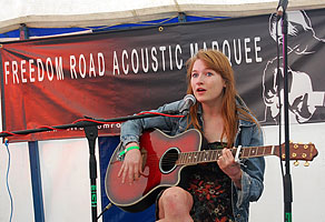 The first performer, in our aptly named Freedom Road Acoustic Marquee, was 14 year old Stevie Mould. Performing songs by Fleetwood Mack amongst others it was difficult to believe that Stevie had only being playing guitar for 4 months and with such a great voice her set was a fantastic opener and set the standard for others to follow.