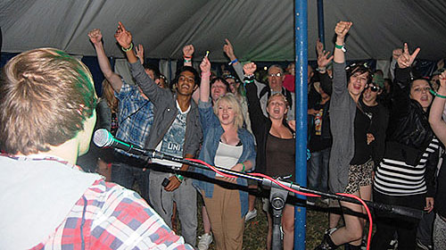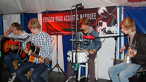 In October last year some of the young people who make up the Freedom Road Collective, Jess, Sammie, Molly, Sammy and Rose where asked to provide the entertainment at an after conference event at the KC Stadium. The organiser of the event was so impressed by the talent that night that he asked if the Charity would be interested in organising an Under 18's Acoustic Marquee at Tribfest 2011. Tribfest, which is hailed as Europe's biggest Tribute Band festival, and which is attended by around 5,000 people, therefore became the focus for our 4th Summer School as we saw it as a great opportunity to do something very new to us all.